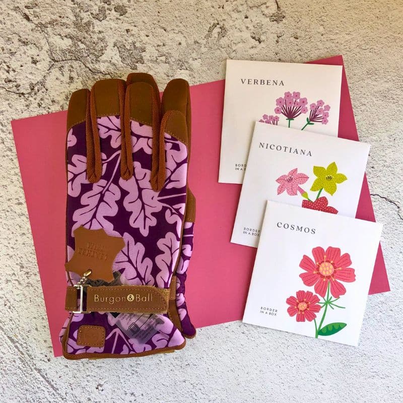 The gloves and seeds can be gift wrapped (see separate listing) in printed tissue paper and tied with a handmade gift tag with a botanical flower illustration (this may vary). This is an additional fee and can be added to your order shopping basket.