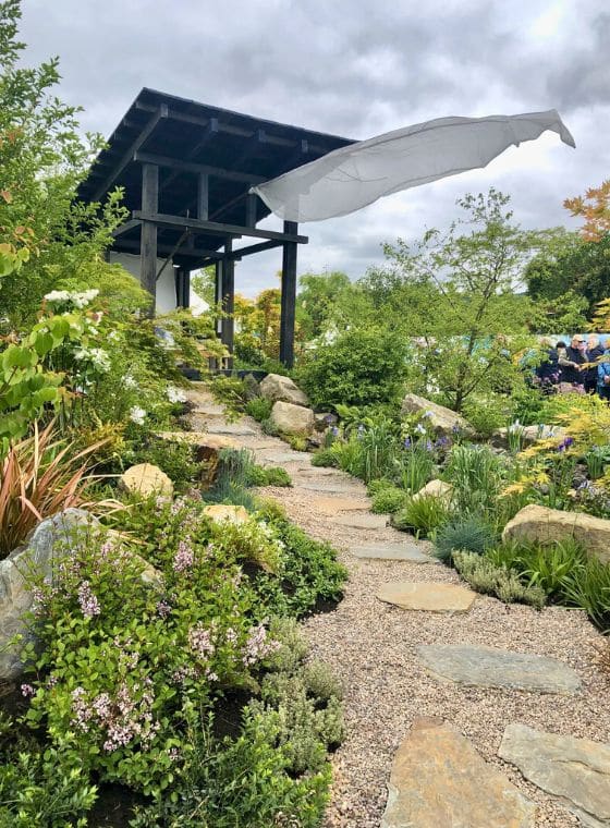 We chatted with Marc for a while about the story behind the garden design and how he created it – from the ‘broken’ slate archway symbolising loss and incompleteness to the ancient techniques used to create the garden. We shared stories of our families and how hospices support the community. It was a very thought provoking garden.
