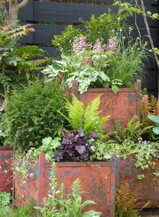 The trees were fabulous and I loved the reused containers planted with shade loving plants.